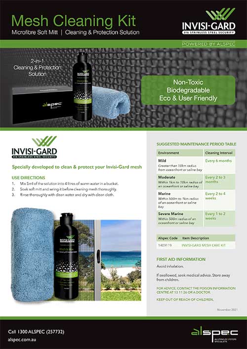 Alspec’s Lifetime Warranty covers the 316 stainless steel marine grade mesh; the aluminium framing is covered by a 15-year Warranty. Alspec® ensures the product is free of any defects from the date of delivery to cover any defects in manufacturing & workmanship when the product has been fabricated and installed in accordance with the Invisi-Gard® Fabricator Manual. The Invisi-Gard® Licensed Dealer will then facilitate covering the installation & service components of this service.