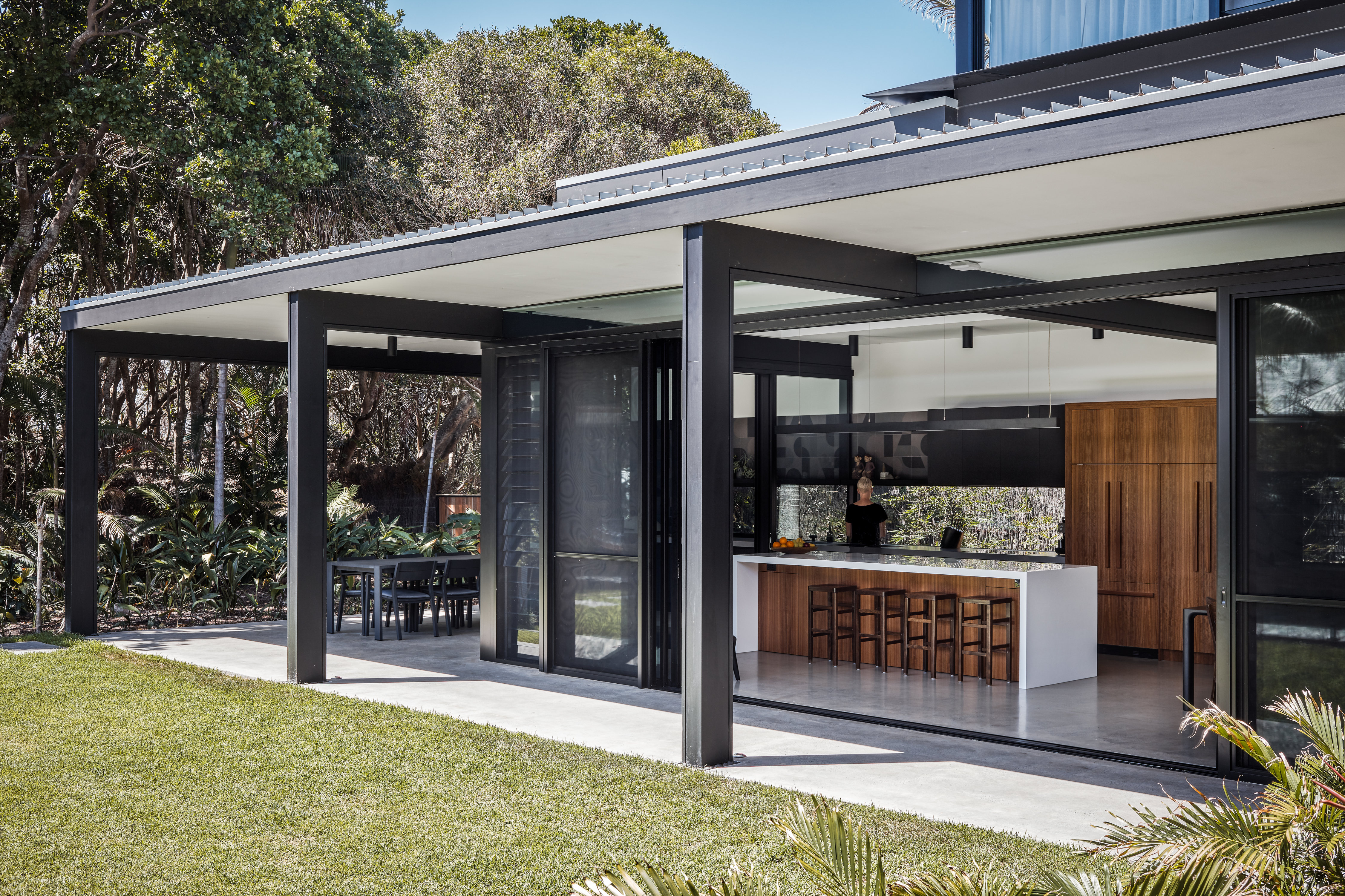This functional home embraces the sub-tropical seaside environment to offer a diverse range of open plan living and relaxation spaces for this NSW family.