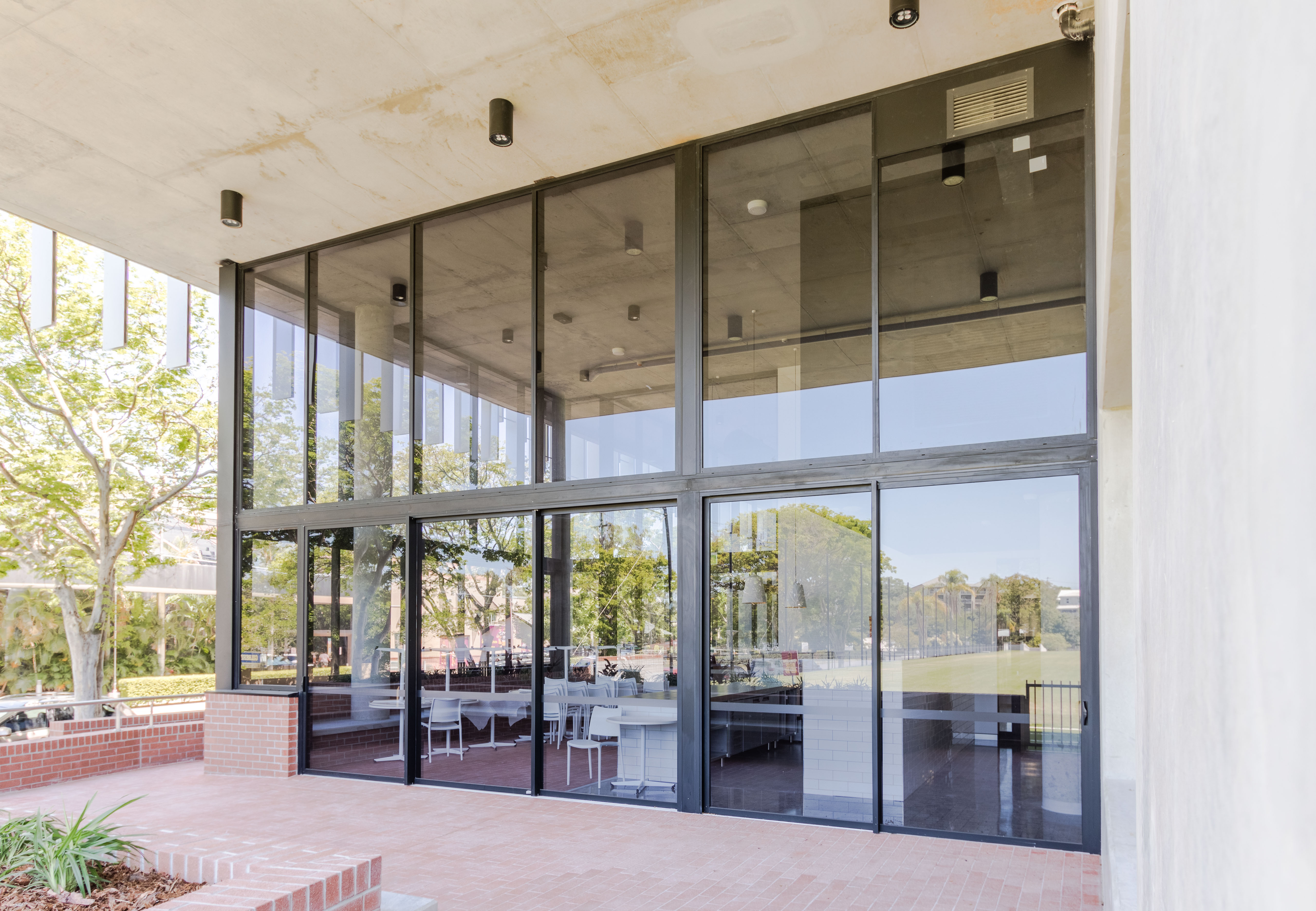 The variety of uses meant the facility needed door and glazing solutions which were both durable and flexible, and able to accommodate the mixture of indoor, educational and fitness-related activities. As a result, the building’s glazed sections were assembled with products from Alspec’s three major ranges – ecoFRAMEplus, Hunter Evo and McArthur. The variety of door openings utilised products from the ProGlide, Hawkesbury and Swan Evo series.