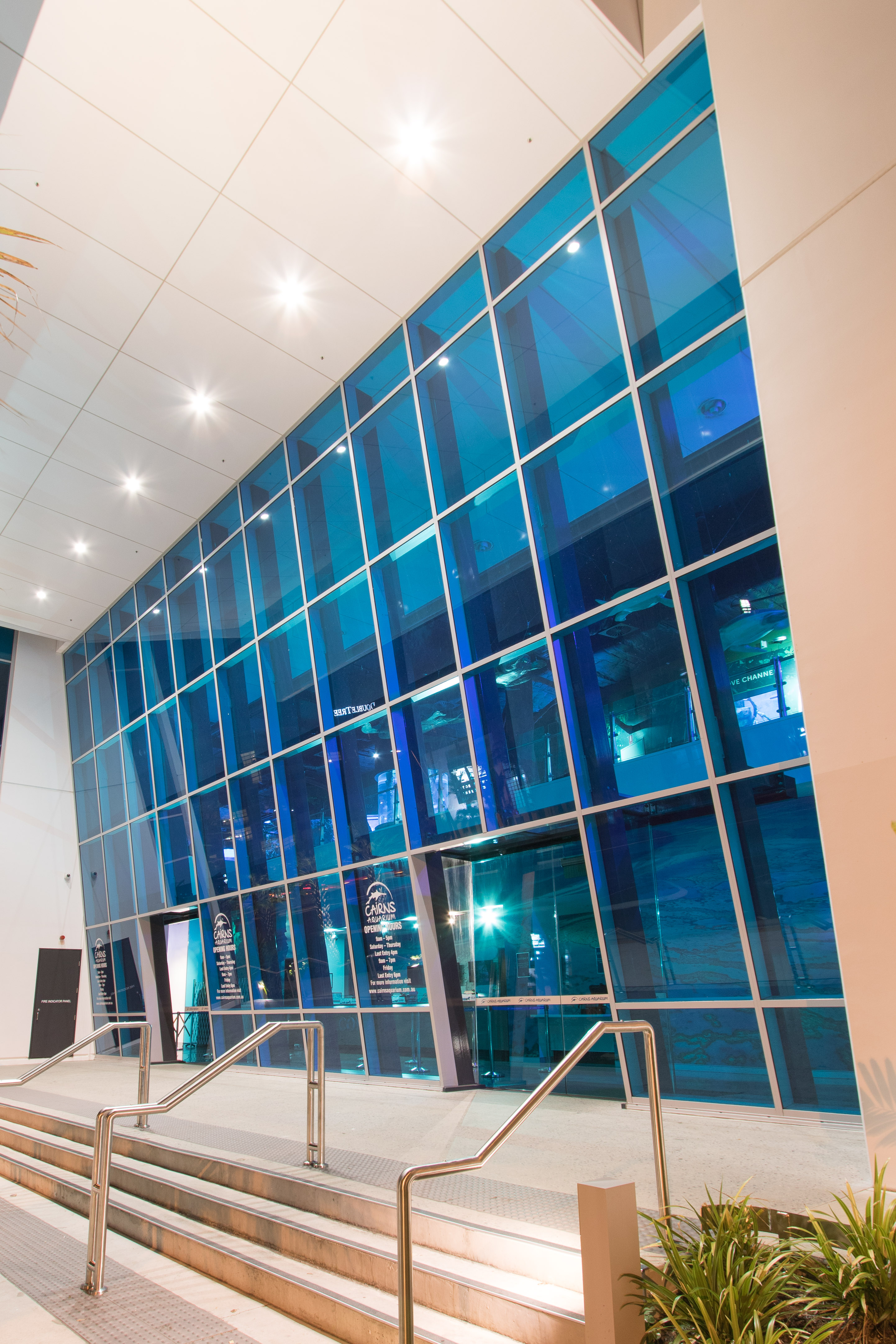 The spectacular blue waters of the Great Barrier Reef have been reflected in the award-winning design of a major new tourism facility in Cairns, North Queensland. The recently opened Cairns Aquarium and Marine Research Centre has been awarded the Queensland Master Builders Association “Project of the Year” for Far North Queensland. The aquarium, which is now home to more than 15,000 aquatic animals, fish and plants, features a striking entrance constructed with panes of sapphire blue glass and Alspec’s high performance window framing solutions.