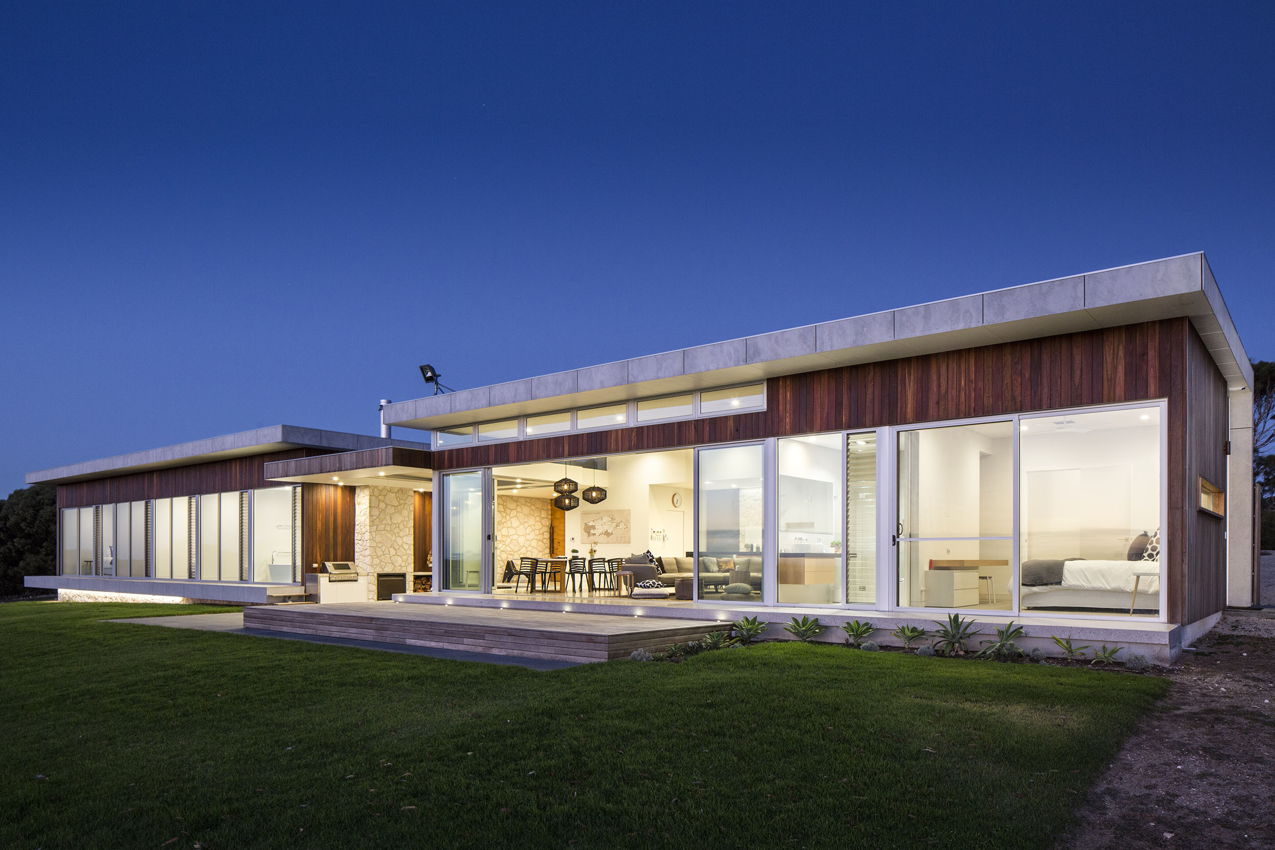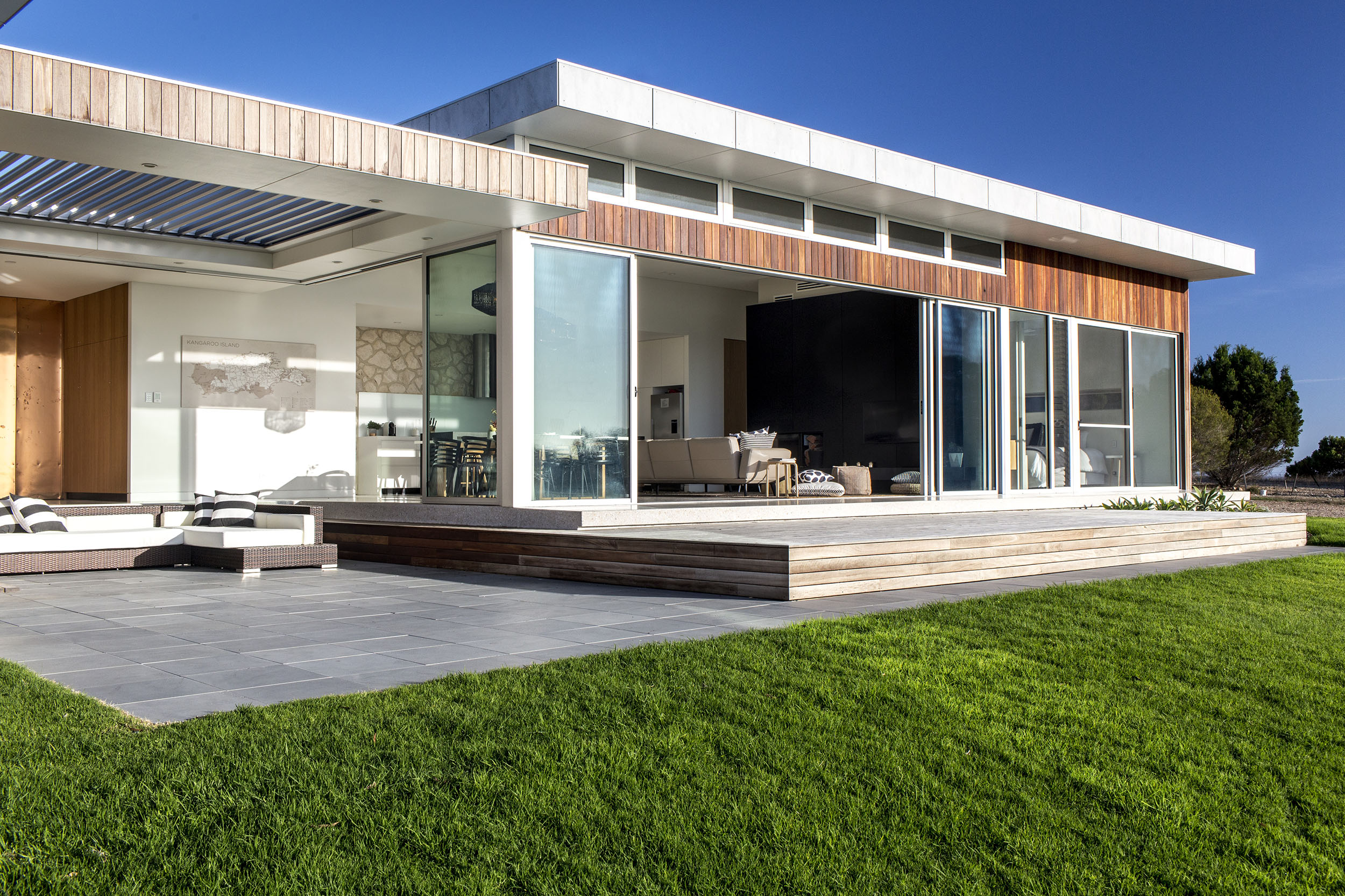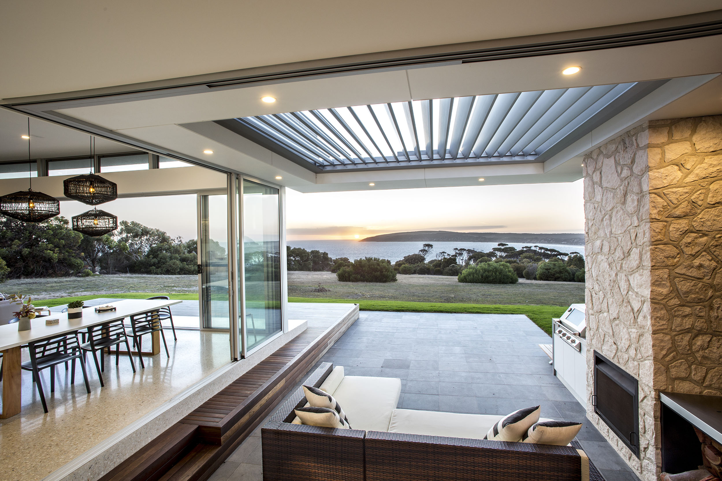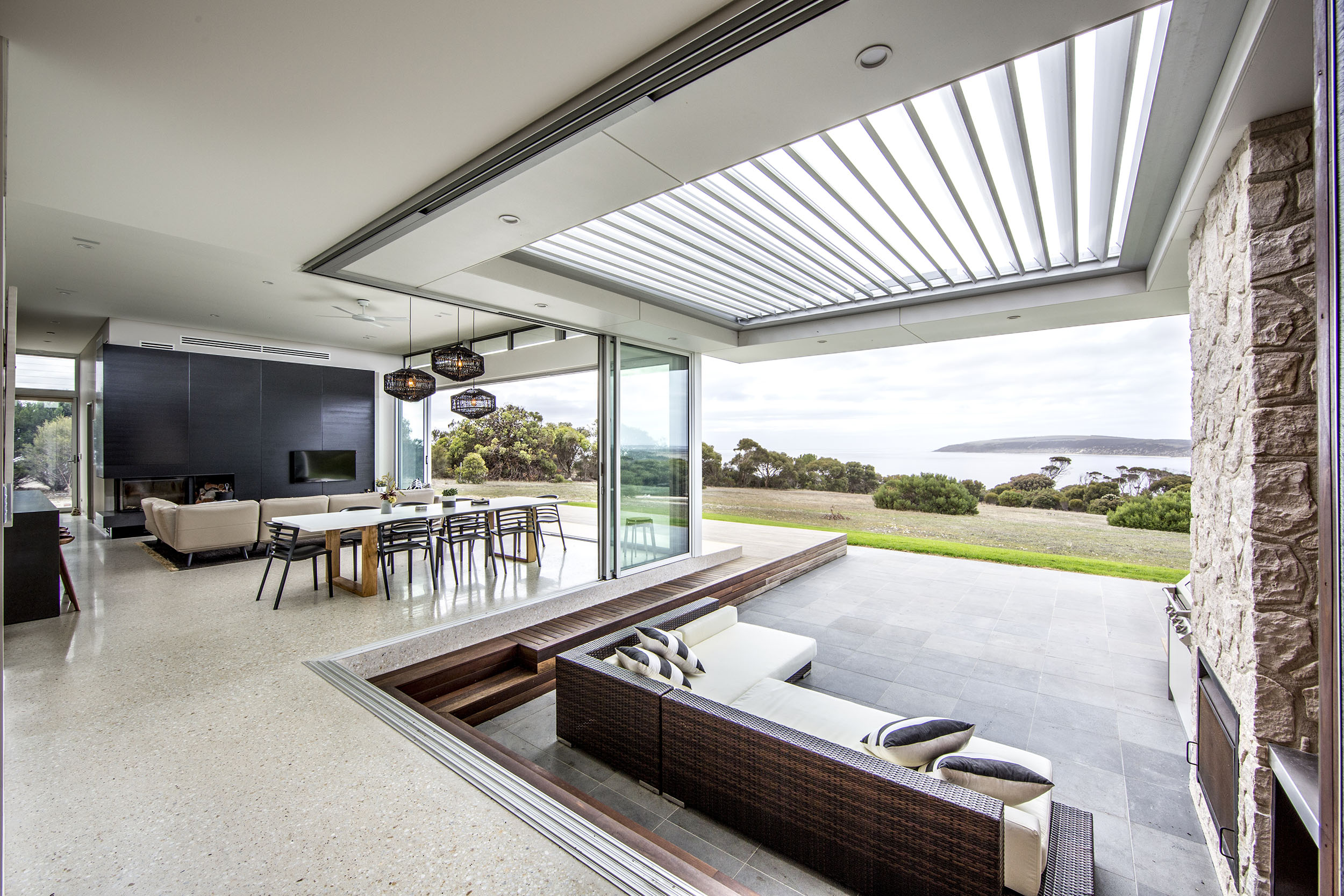 Whether completely opening up their living spaces in summer, or keeping them securely closed during winter, the inhabitants of this Emu Bay Home will always be able to create the perfect living space from which to enjoy this picturesque location.