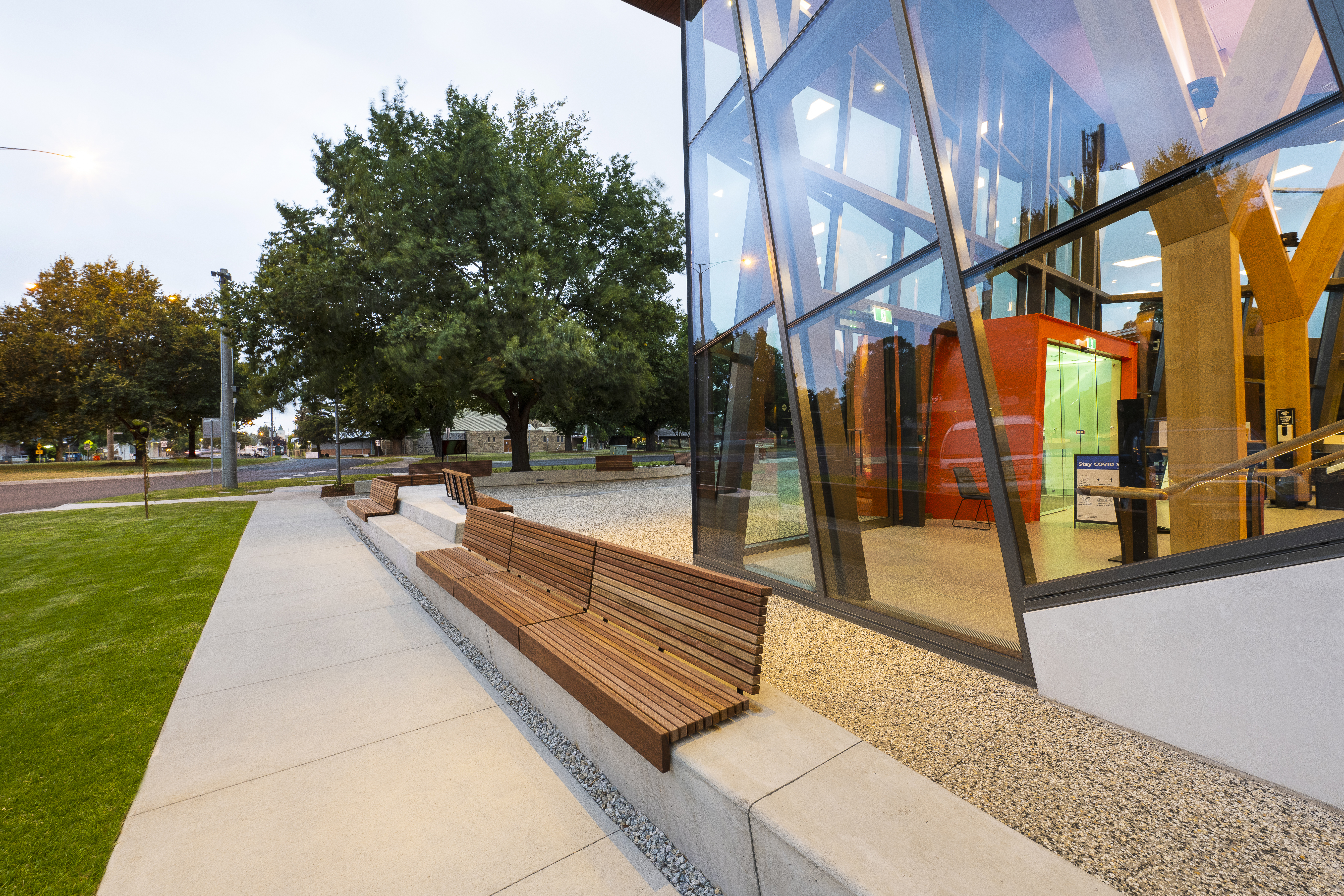 The works included a new basement and ground floor building, a 750-seat performing arts centre, outdoor event areas, meeting rooms, a café, training facilities, car parking and improvements to adjacent on-street parking.