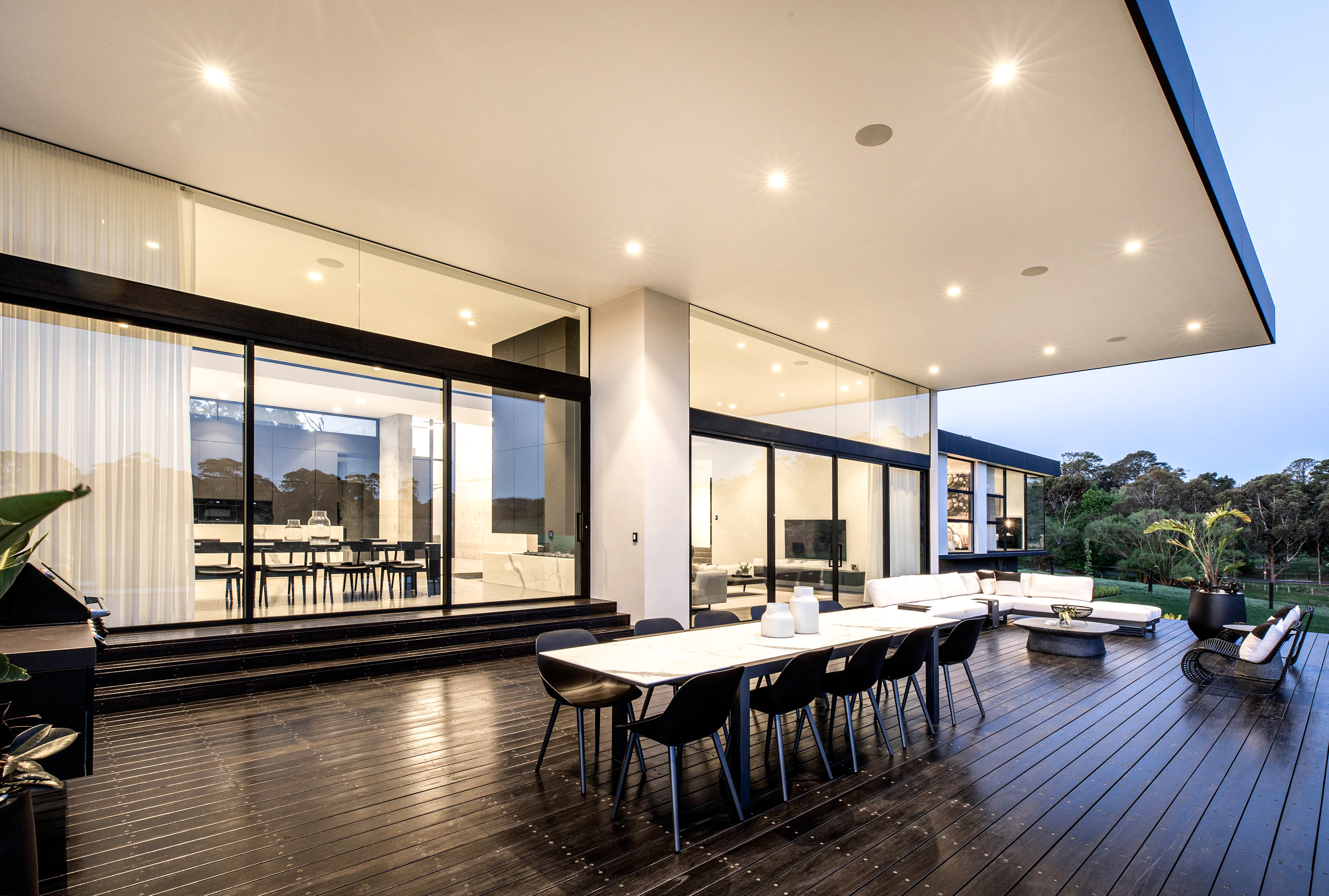 The home is a veritable honeycomb of glass walls, floor-to-ceiling doors and vast windows that connect the owners with their beautiful surroundings while ensuring controlled solar heat gain and loss in all weathers.