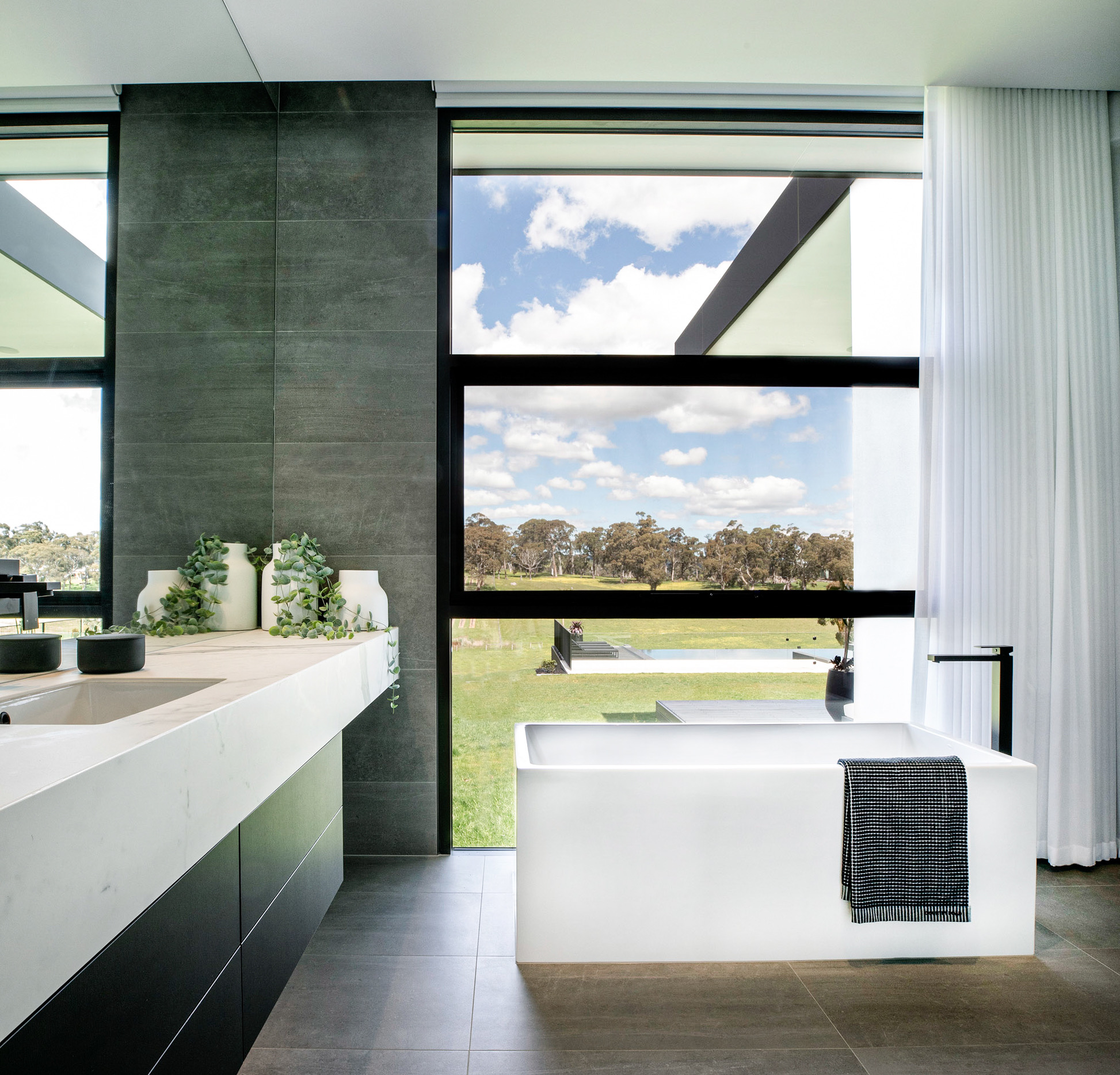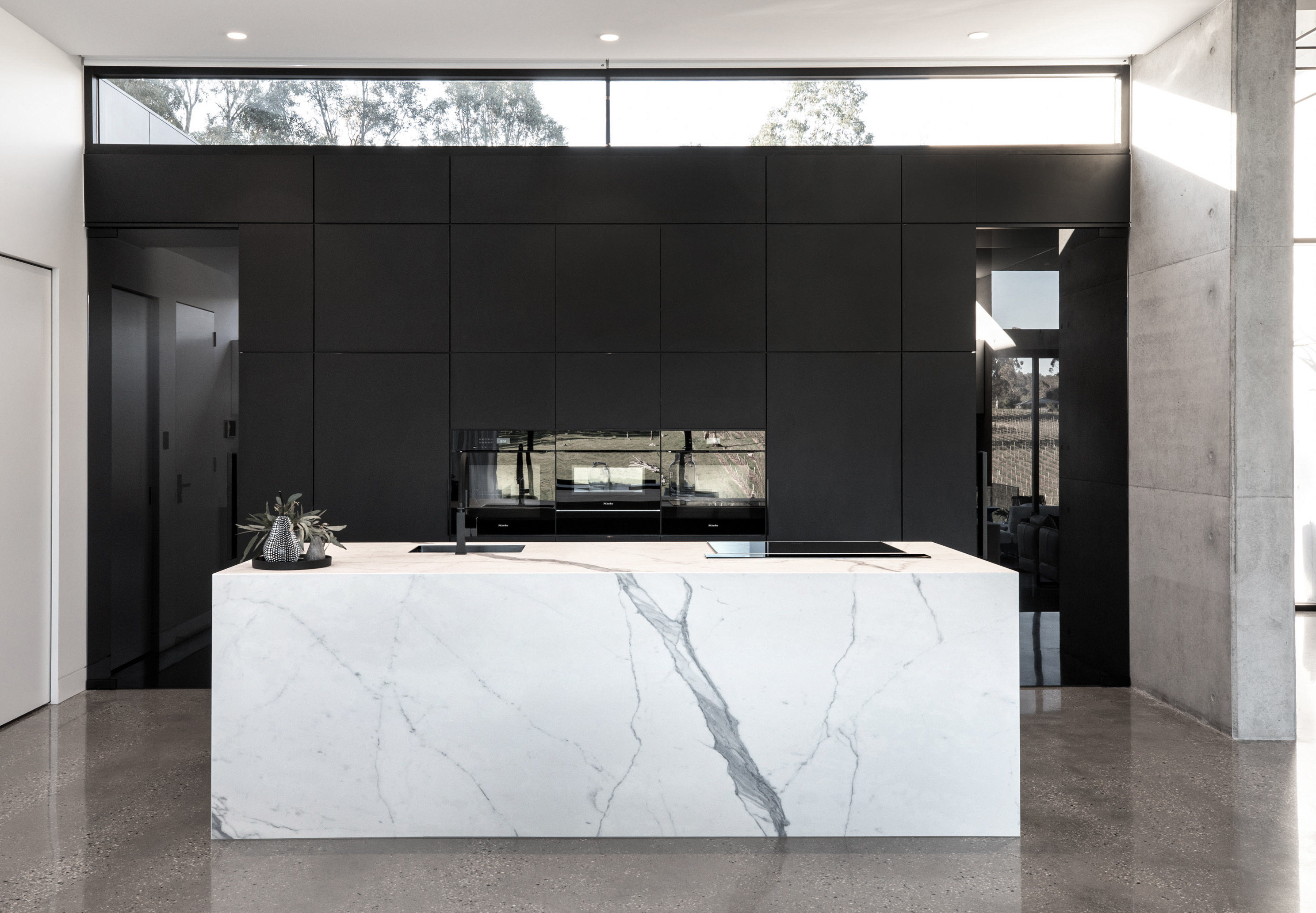 The owners originally had their hearts set on a two-storey home, but architect Tim Hodges (who is also a long-time friend of the couple) convinced them the views over the neighbouring Hahndorf winery and vineyard would have even more wow-factor if they raised the height of the ceilings and kept the footprint to one floor. The results of that decision are spectacular.