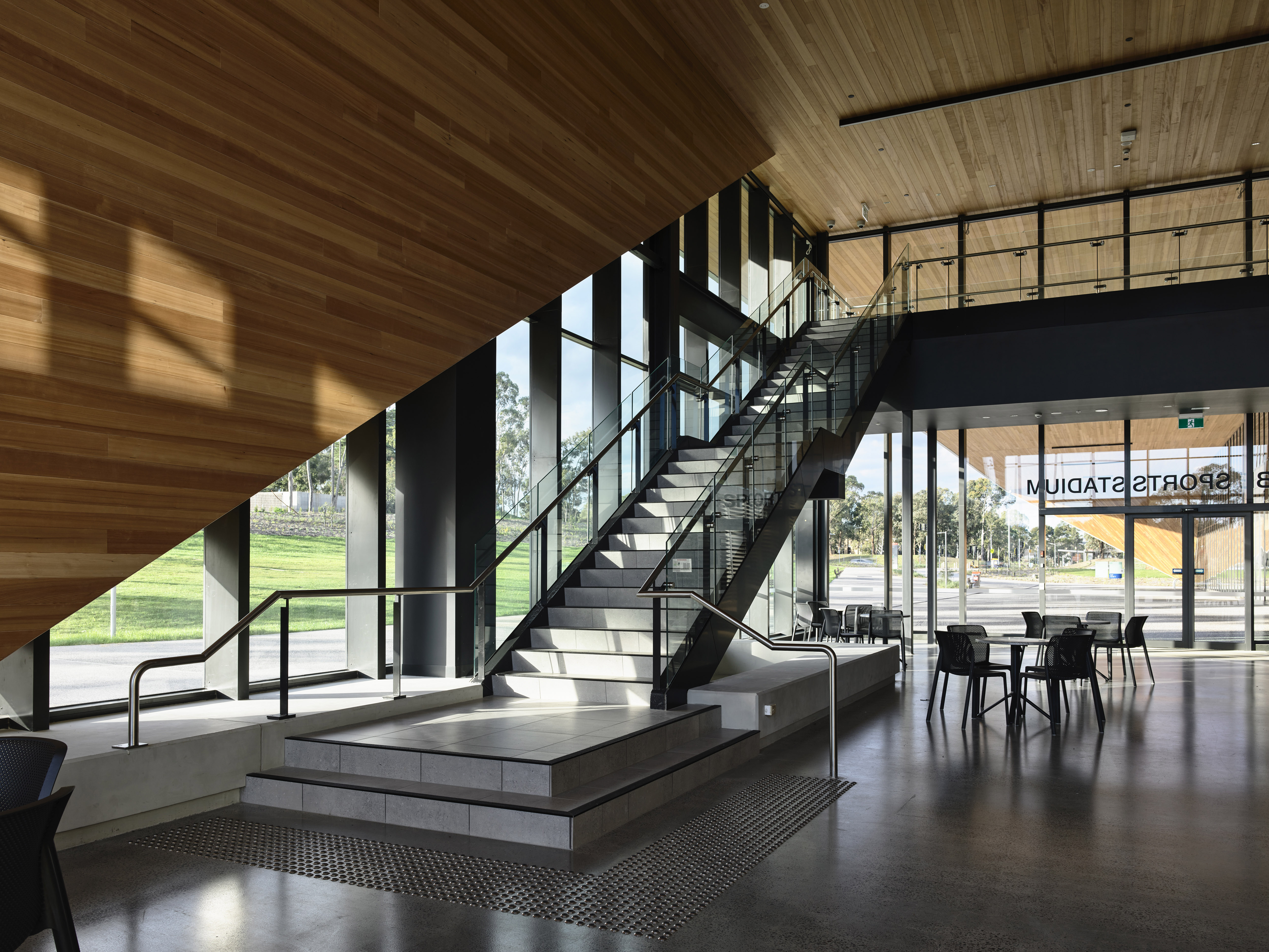 Originally envisaged as a high performance athlete training centre, the new stadium was redesigned to house facilities for academics, students, community clubs and sports administrators under the one roof. Builder Adco, who have an extensive track record in constructing sporting and education facilities, worked with the University to revise the existing masterplan, repositioning the new stadium as a central hub servicing a wider cross section of users.