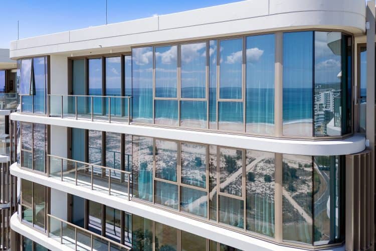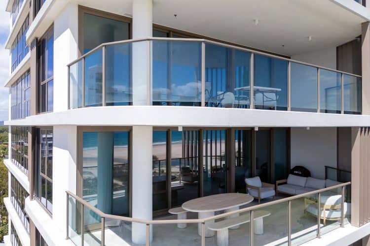 Positioned along a rare north‑facing curve of coastline, the development enjoys almost half a football field of beach frontage. This unique orientation not only amplifies natural light and sea breezes but also delivers dual vistas: sunrises over Snapper Rocks and sunsets behind the Surfers Paradise skyline. Each residence benefits from this remarkable visual connection, creating an atmosphere of coastal tranquillity rarely found in contemporary beachfront developments.