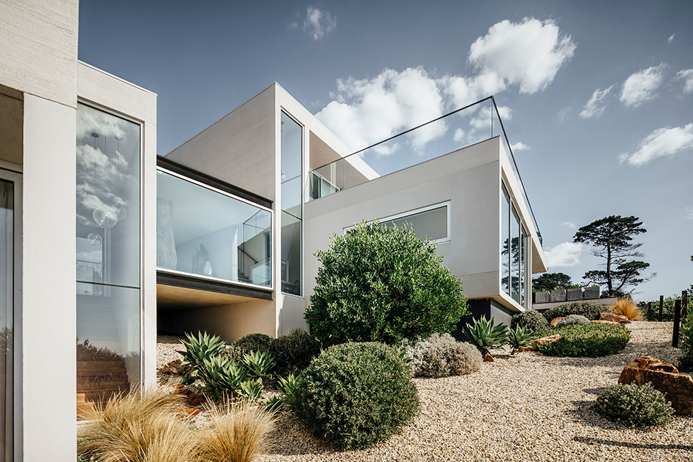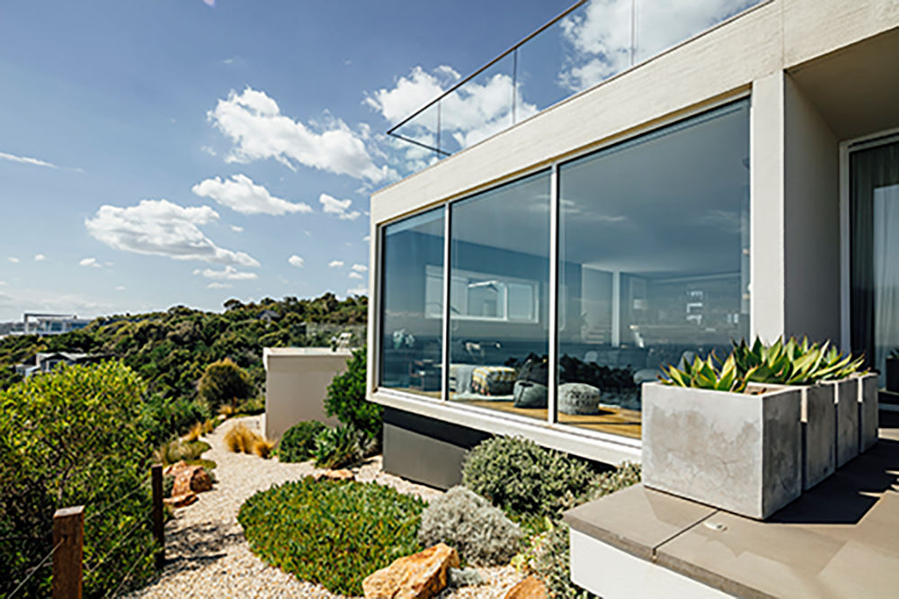 The complexity of the design revolved around being able to use the largest possible glazed panels for the doors and windows, as well as challenging site access which required a crane to lift the framing over the building into place. Being coastal, consideration also need to be given to the durability of window and door framing solutions.