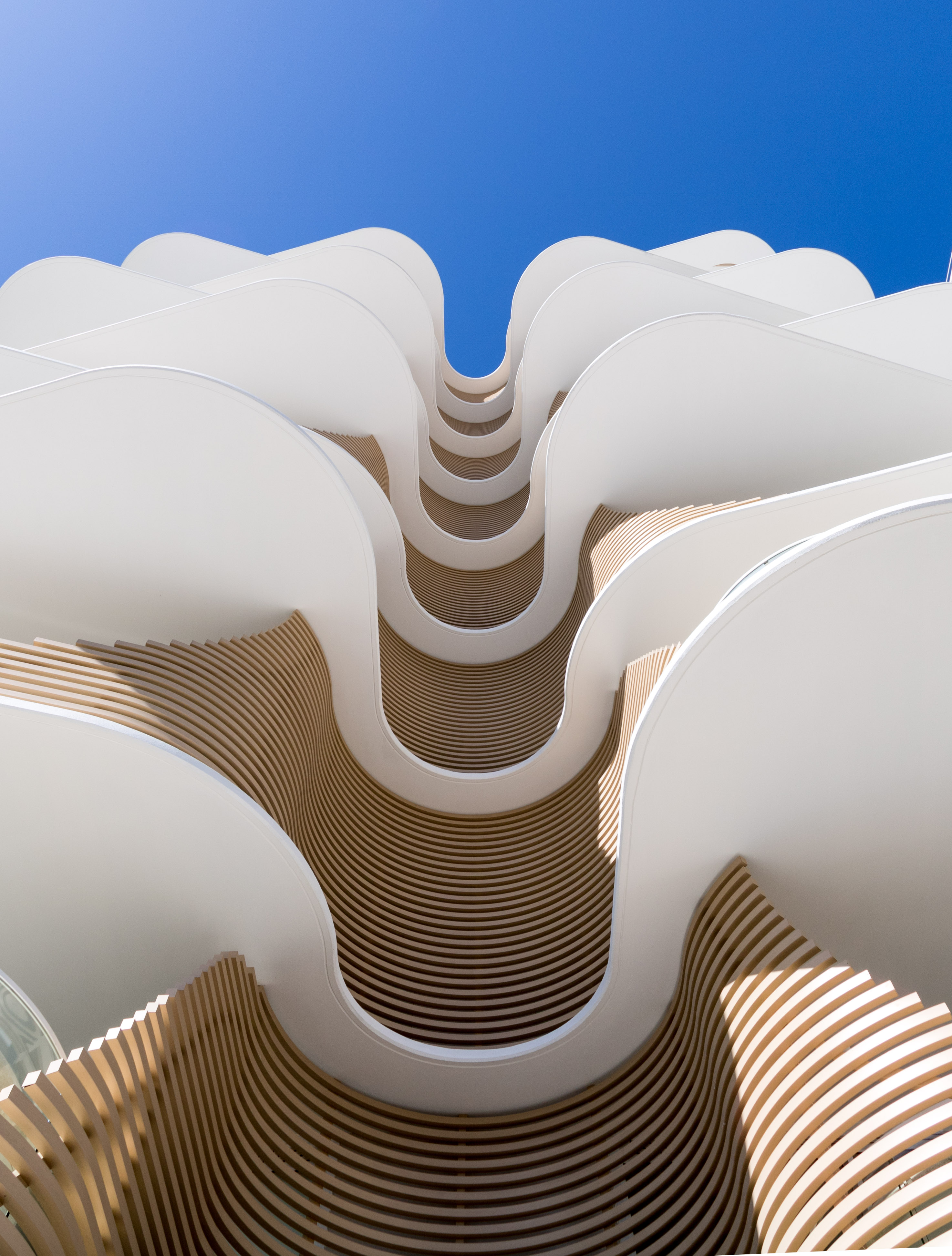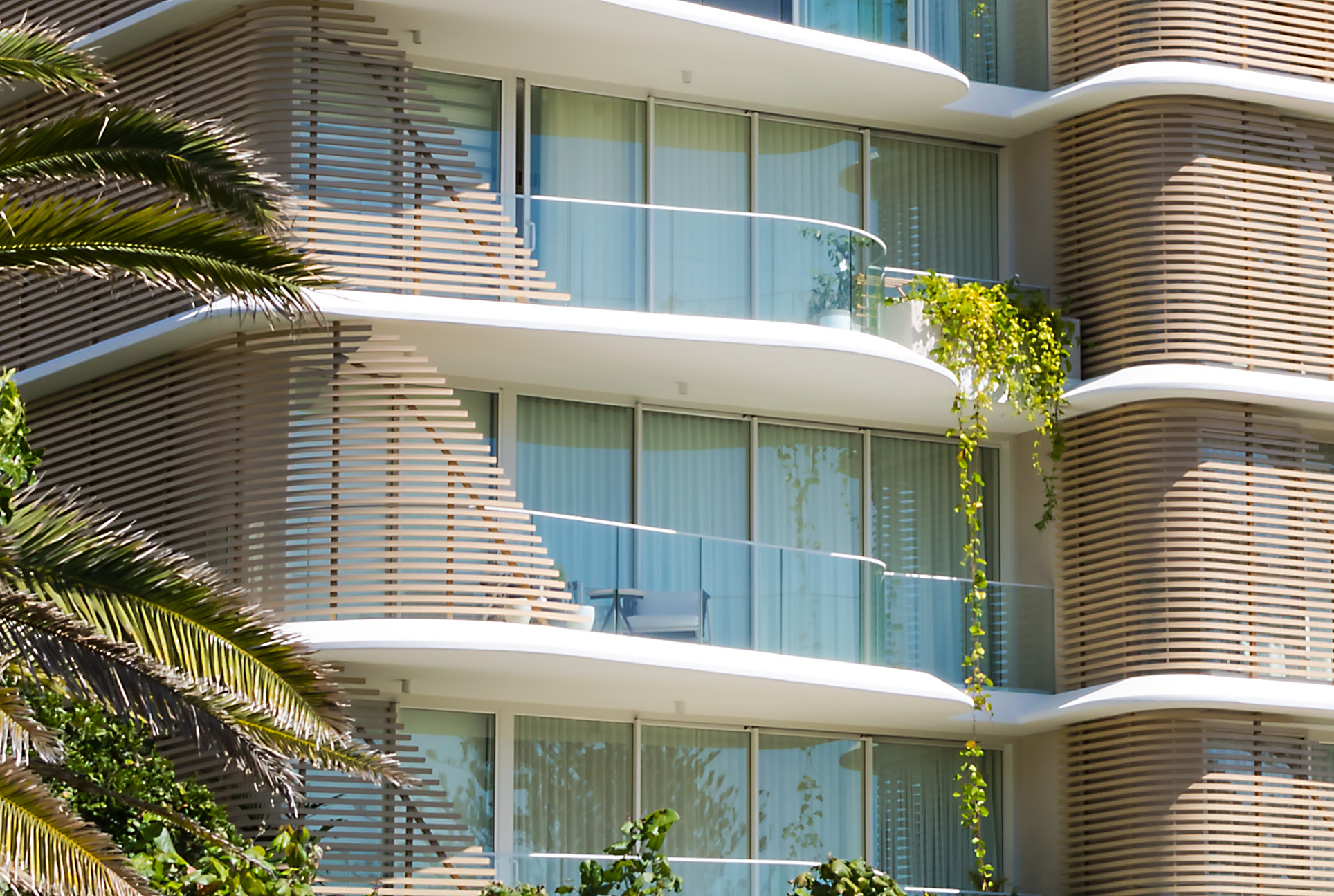 The distinctively shaped balconies, accessed via Alspec ProGlide High-Performance Sliding doors, have been cleverly designed to provide shade where needed. The overlapping balcony slabs optimise overhead shading for the levels below, in addition to the vertical protection provided by the sliding screens.