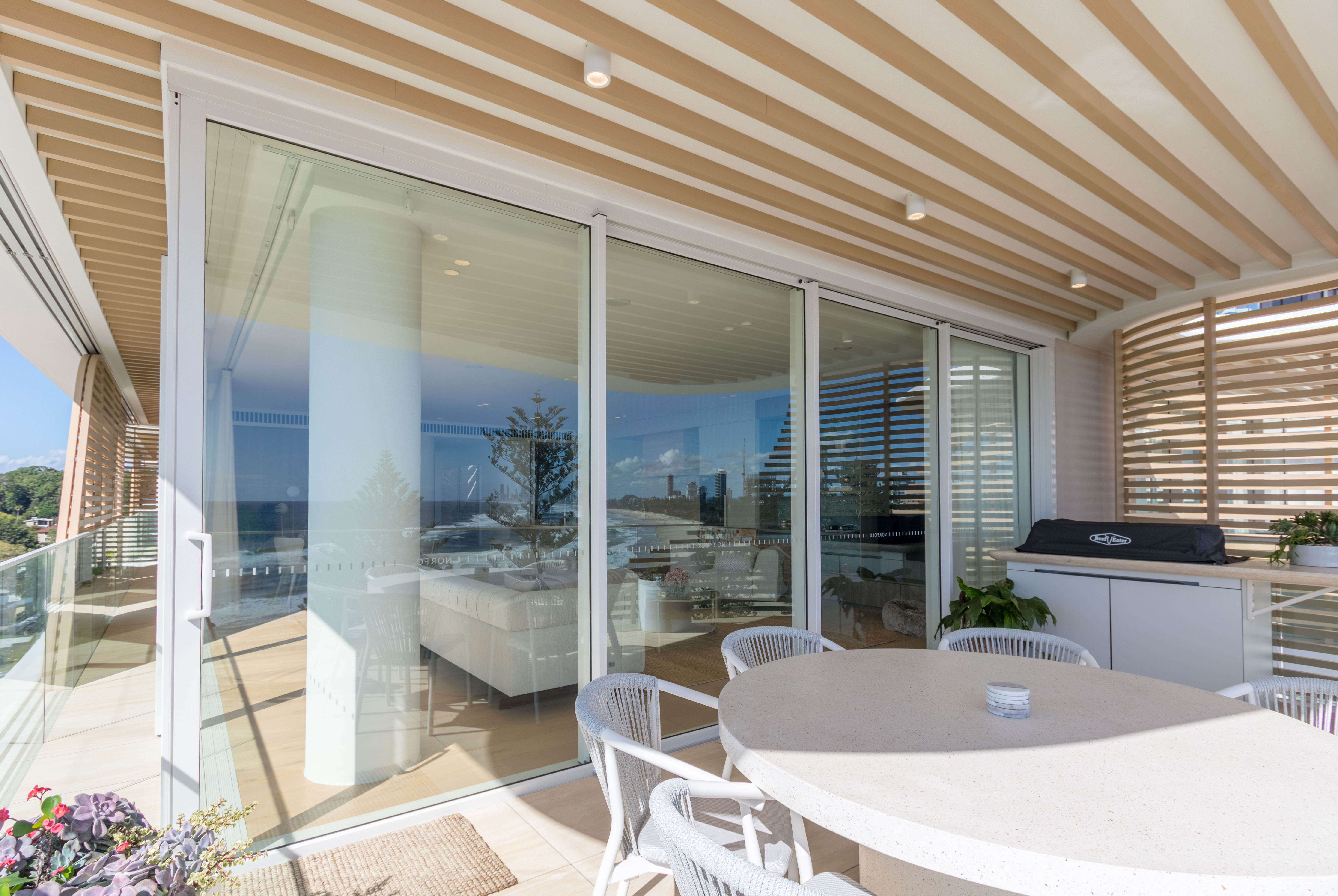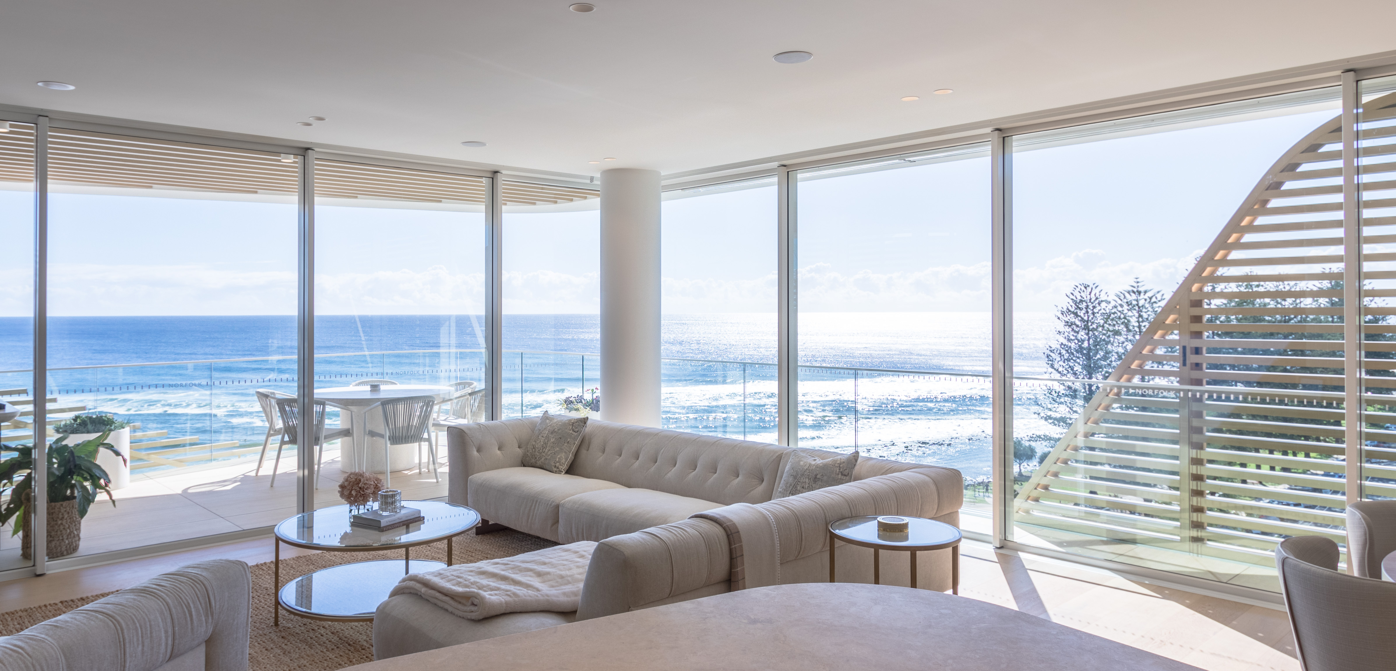 With a name referencing the nearby iconic trees, the natural-look exterior of the Norfolk apartments harmonises perfectly with their seaside location.