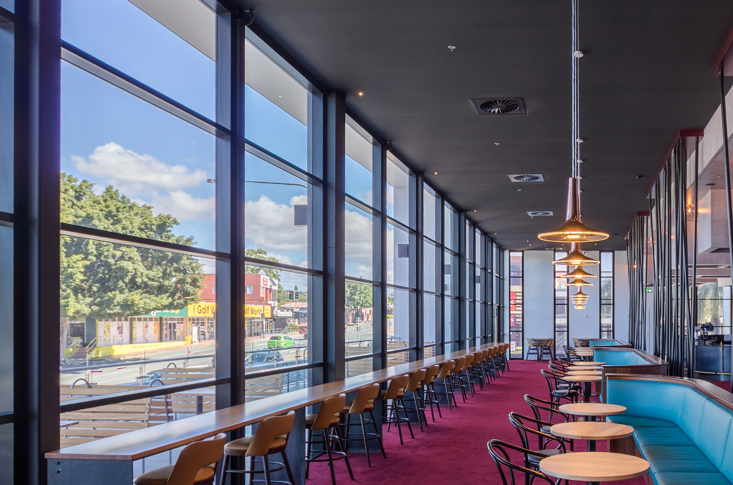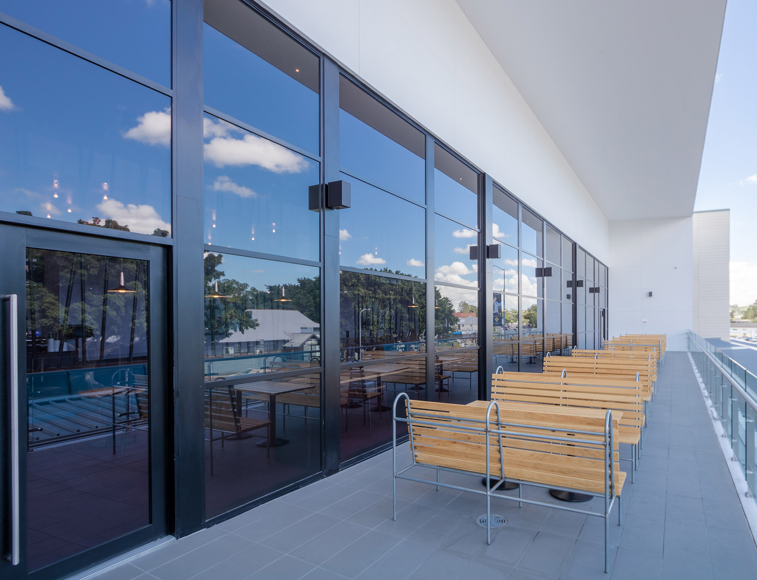 Alspec windows and door framing solutions create an impressive exterior for this entertainment hub