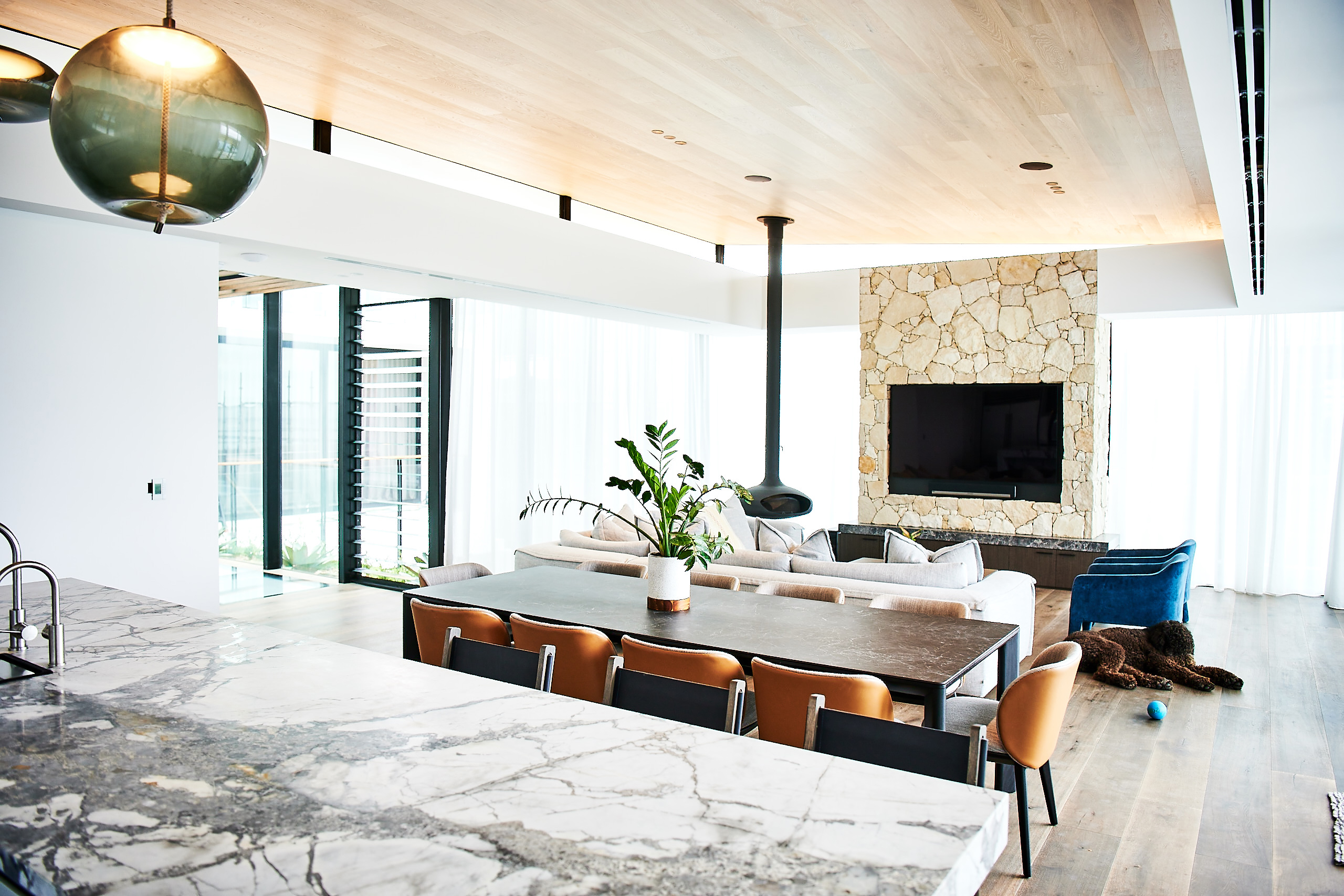 The window framing was teamed with Alspec ProGlide high performance sliding doors to deliver easy access to the generous outdoor areas. The heavy-duty panels can be configured in multiple combinations and can accommodate single or double glazing as required. ProGlide doors have been designed to cope with the potentially harsh conditions of the Australian climate and are particularly suitable for withstanding the rigours of the coastal environment.