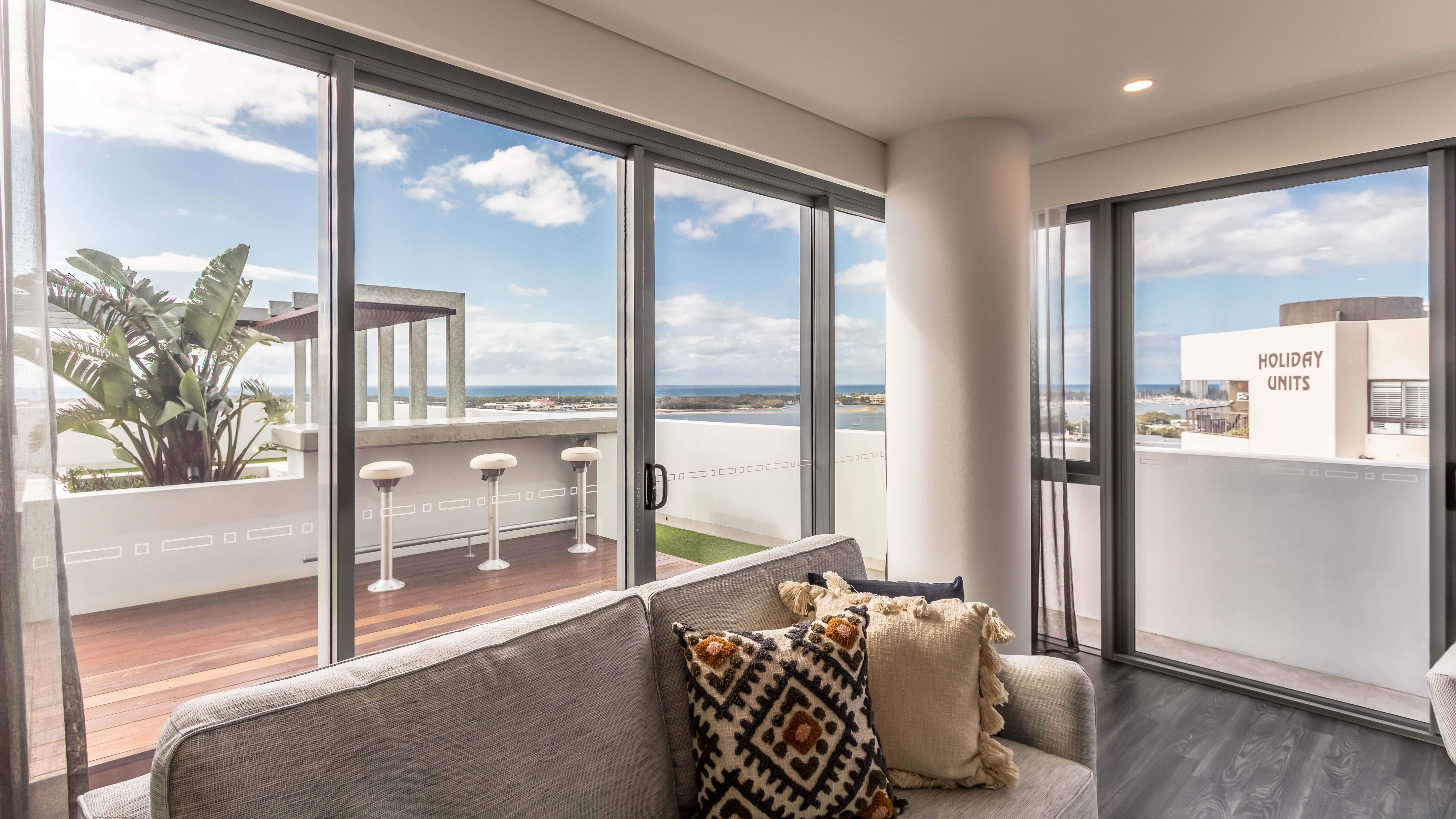 Panoramic views abound of the ocean, cityscape and hinterland of the beautiful Gold Coast from this new combined residential/hotel apartment complex in Southport.