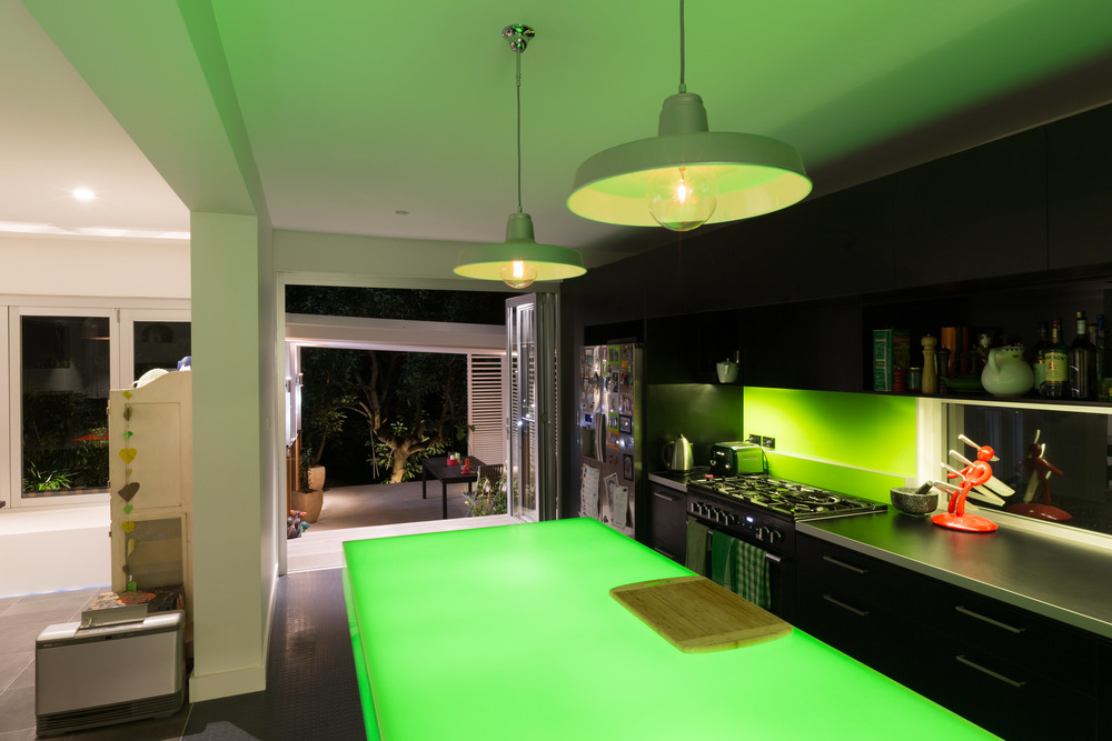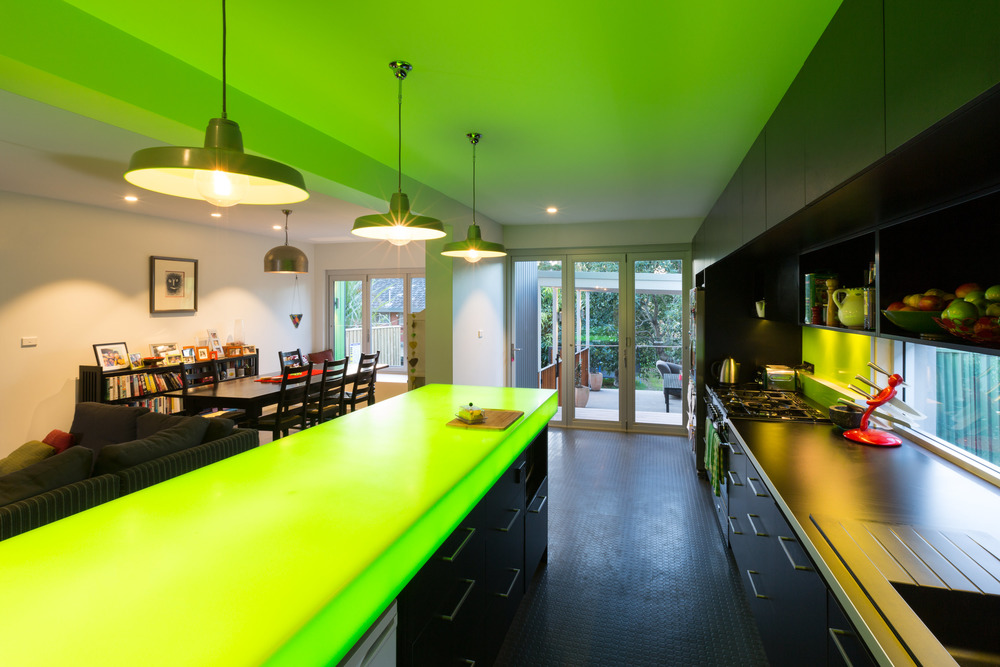 The architectural renovation centred on moving the kitchen and living areas downstairs and integrating them with the new enclosed outdoor entertaining area and pool at the rear of the property. To connect the new spaces, Alspec Hawkesbury multi-fold doors and windows were selected. Multi-fold doors and windows are the ideal option to maximise the width of an opening when space is at a premium. Multi-fold arrangements can be stacked inside or outside, and configured with an odd or even number of door panels. Popular in both residential and commercial environments, Hawkesbury doors operate smoothly via channels that are concealed when the doors are closed, forming a secure and weatherproof barrier. In this home the multi-fold doors have been used to provide uninterrupted views of the new pool area from the repositioned kitchen.