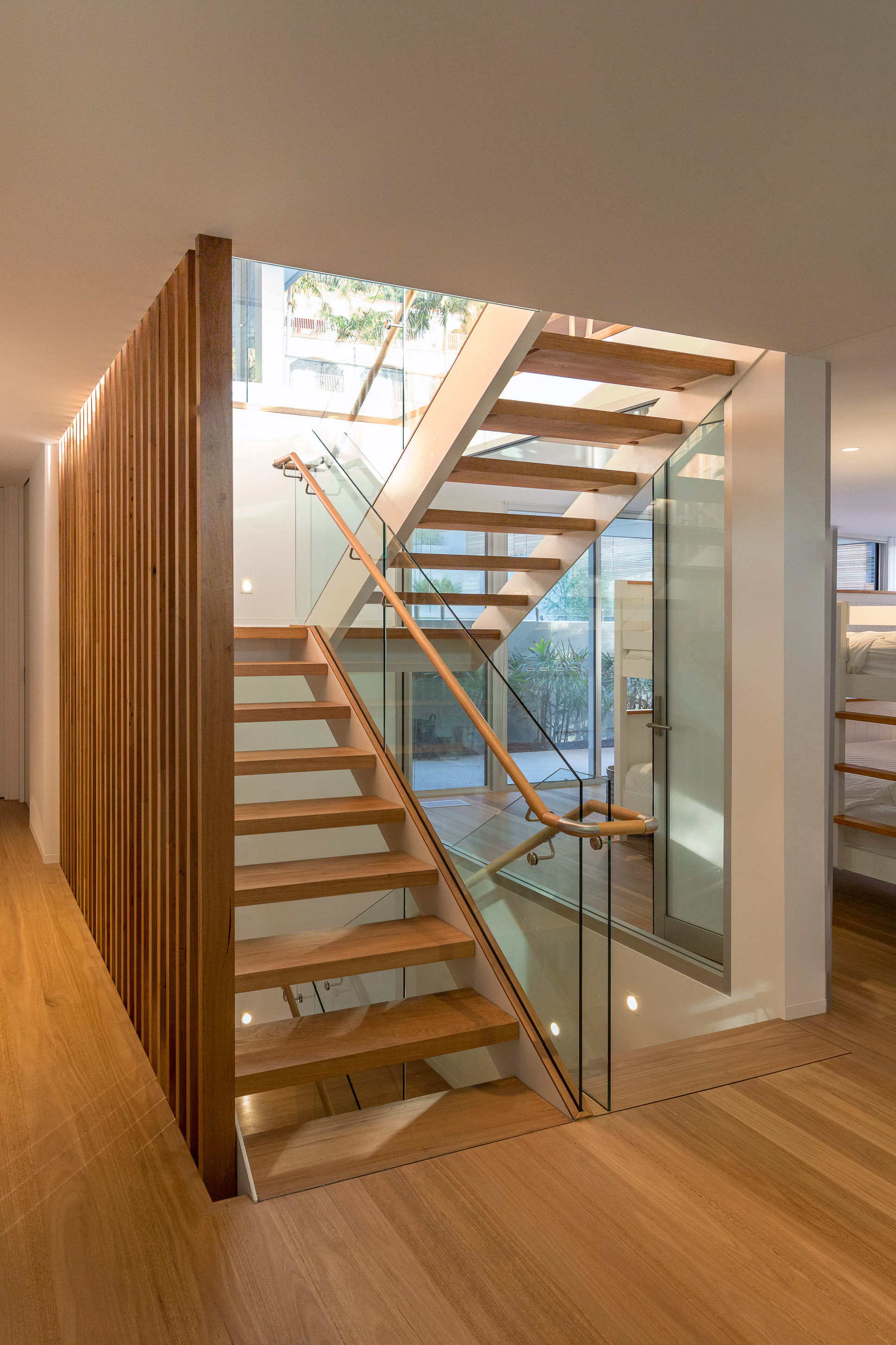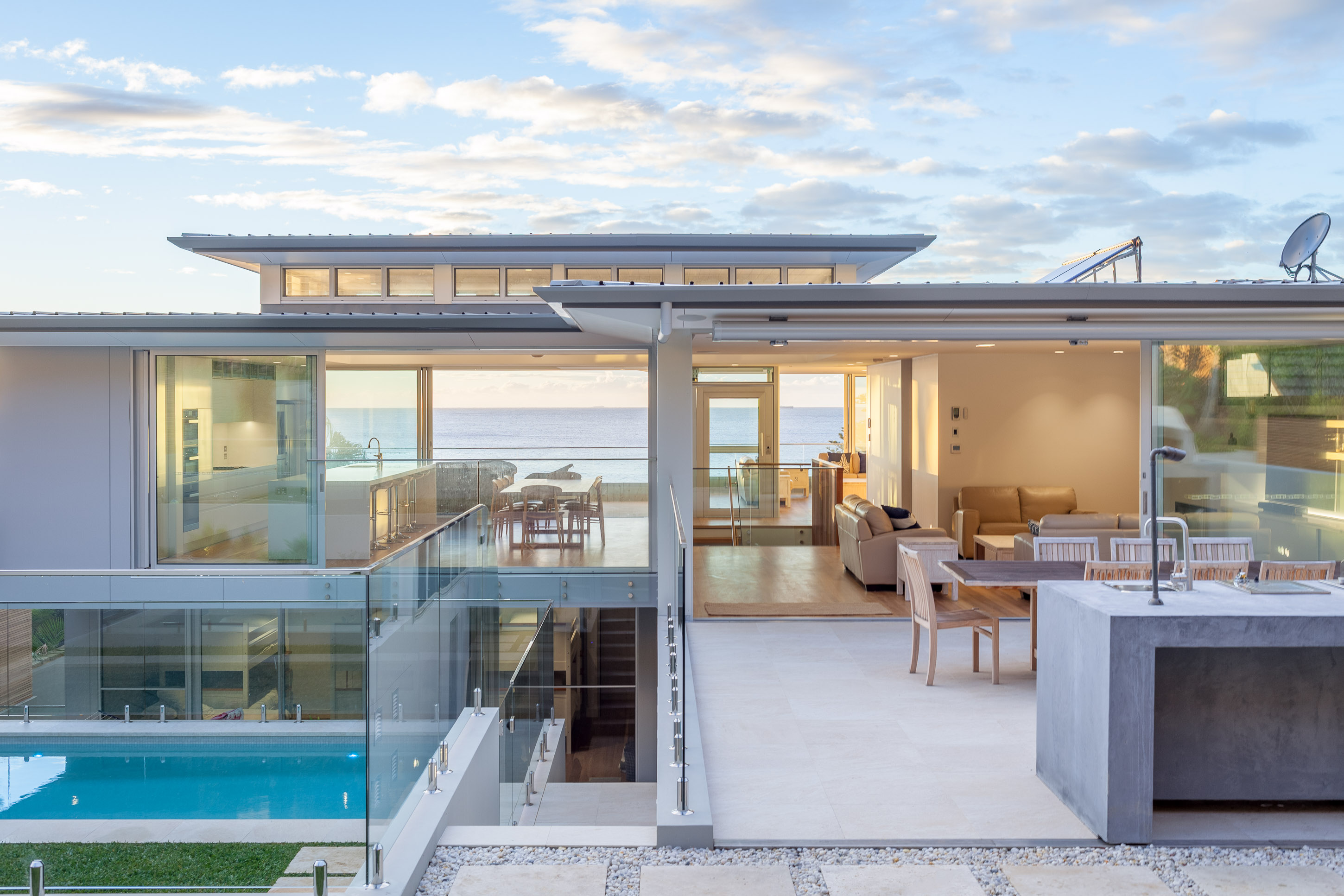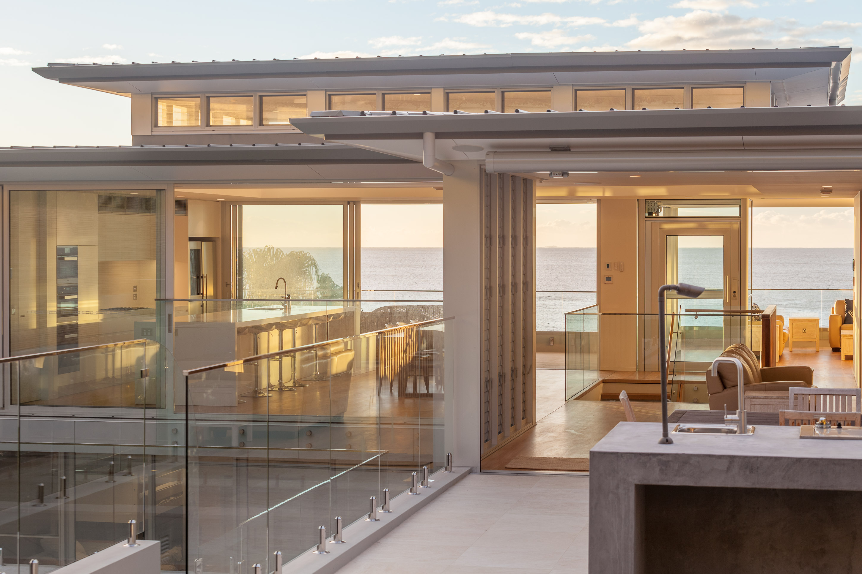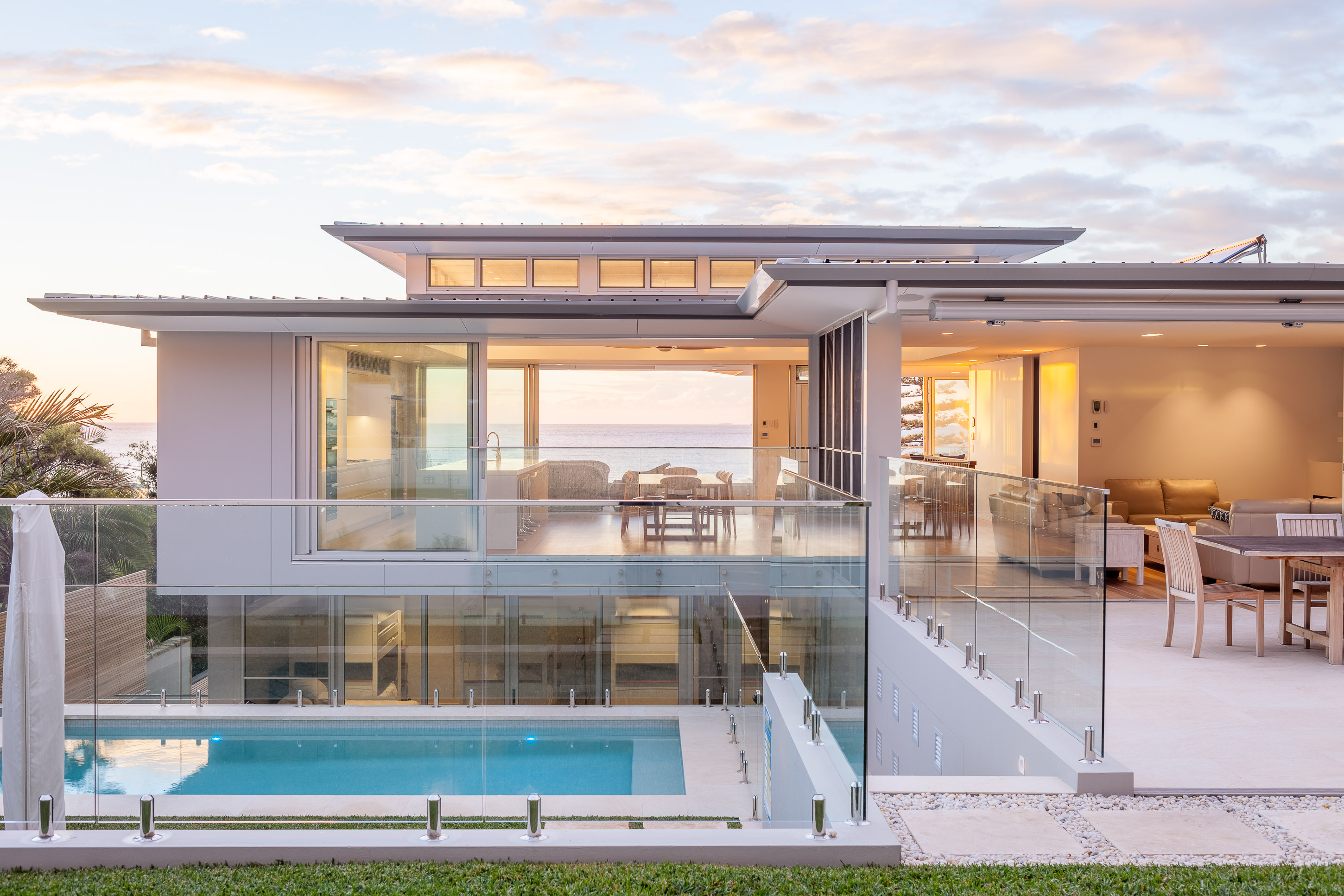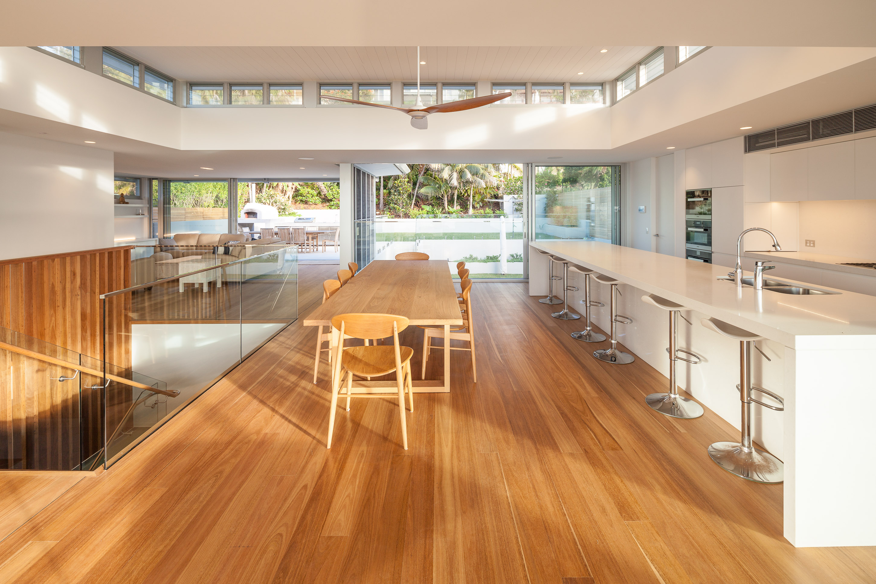 The architectural brief for the Whale Beach site was to create a home that would suit both everyday living and large family gatherings. A key factor in delivering to this brief was the decision to transparently connect the indoor and outdoor areas with large three-panel Alspec ProGlide High Performance Sliding Doors. The oversized glazing panels achievable with ProGlide doors ensure the floor-to-ceiling ocean outlook has been maximised whether they are open or closed. In addition, a central, glass-framed stairwell provides a consistent connection between the internal areas, linking the individual spaces and further maximising the infusion of light.
