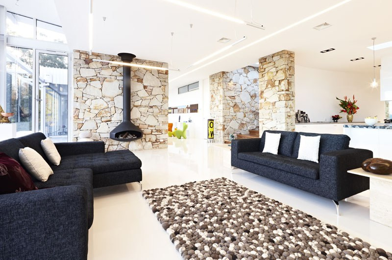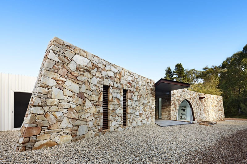 Art teacher and sculptor Laurie Smith and his wife Renee Hoareau are both zealous art lovers. Their vision is to create a sort of domestic gallery that will inspire both inside and out with a modernist cube shaped construction of steel, stone and glass that celebrates and pays tribute to some identifiable artistic references. This will be a place to live, work, create and display their extensive art collection in equal measure. Inspiration comes from many sources – for example the 25 metre long stone facade with its tricky curved window is reminiscent of a well known state gallery.